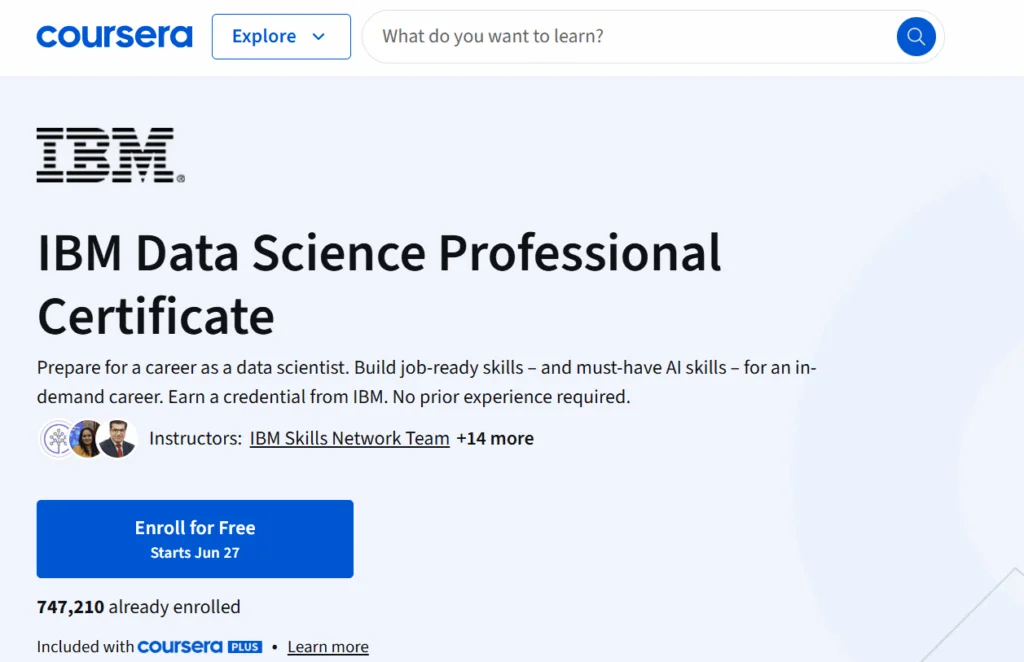 “The best beginner-friendly data science course is the ‘IBM Data Science Professional Certificate’ on Coursera.”